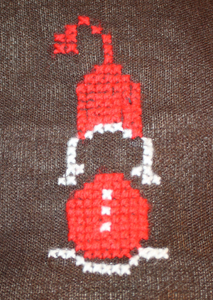 Für Leo und Philipps Sack habe ich das Nikolausmotiv genau so übernommen und den Namen dazu gestickt.